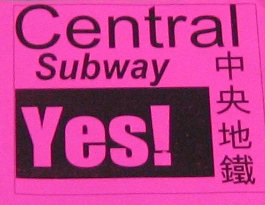 | Pro-subway badge typically worn by Chinatown project supporters. |