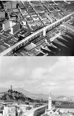 | Embarcadero Freeway. Credits: Telstar Logistics (top), Wayfaring (bottom). |